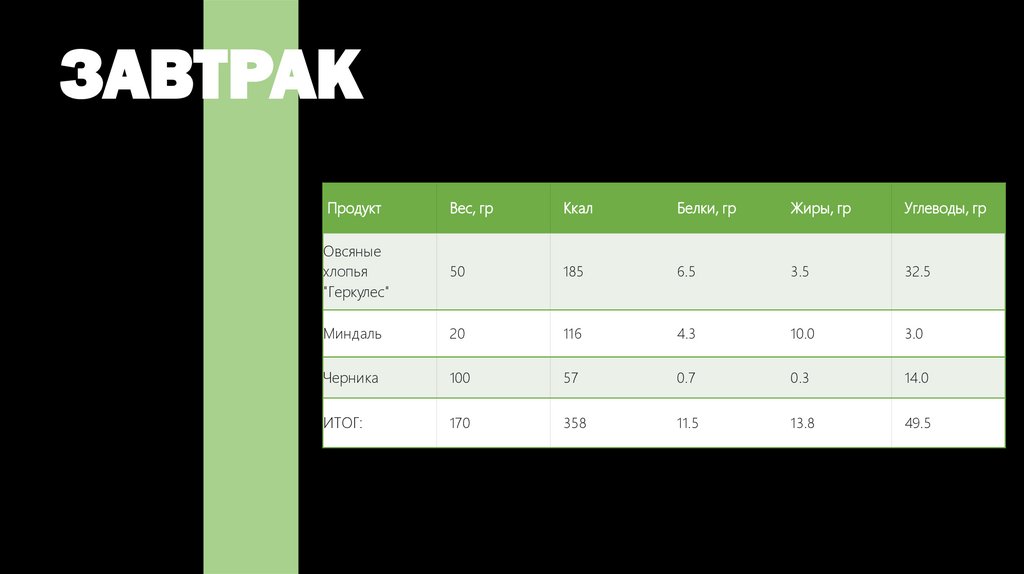ЗАВТРАКПродукт