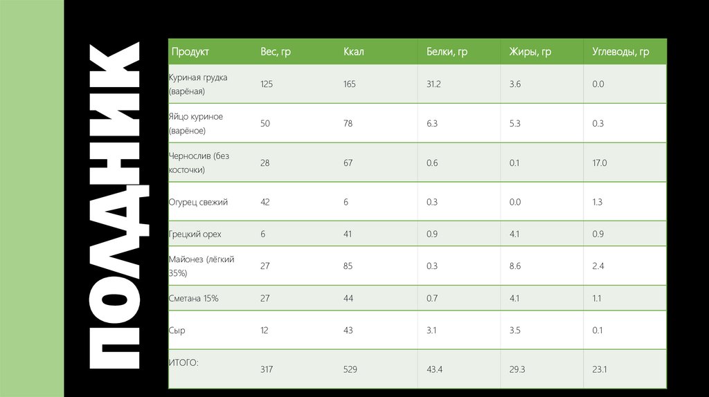 ПОЛДНИКПродукт