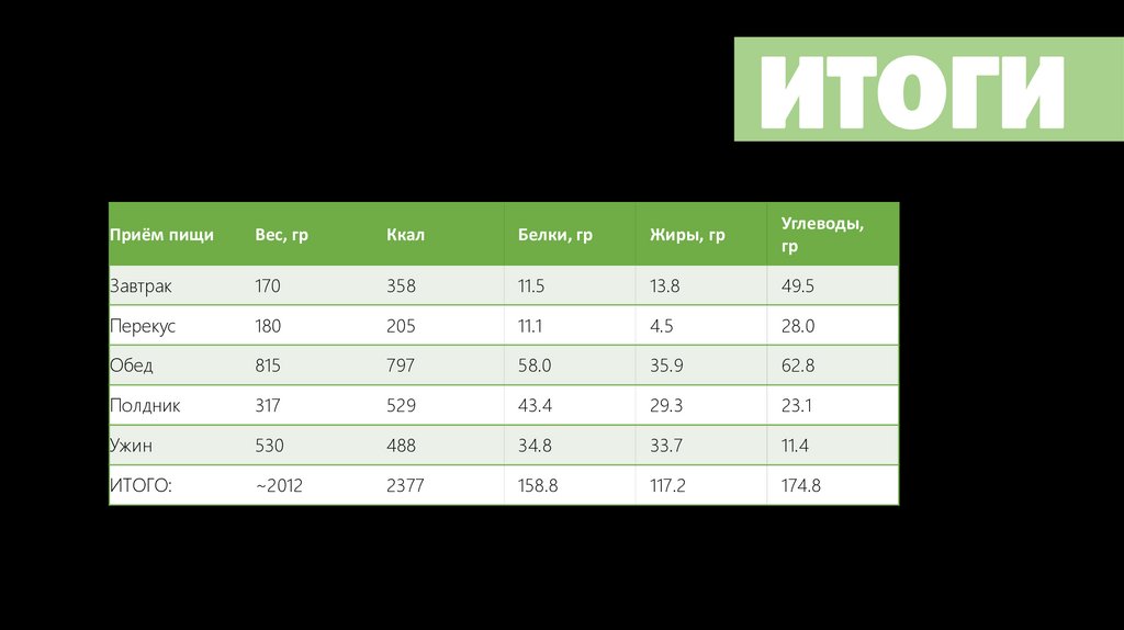 ИТОГИПриём пищи