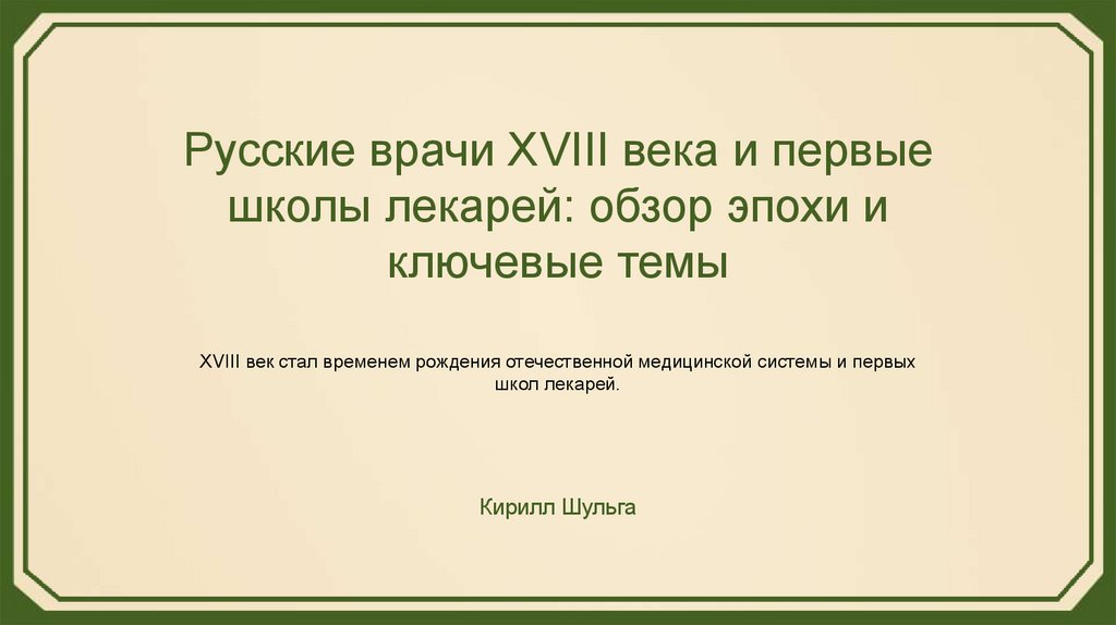 Русские врачи XVIII века и первыешколы лекарей: обзор эпохи и
