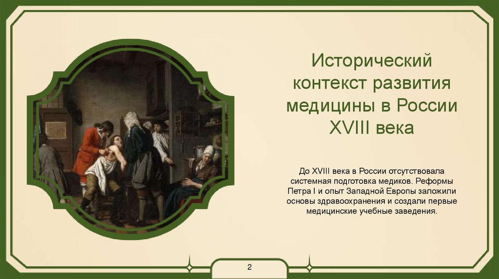 XVIII век стал временем рождения отечественной медицинской системы и первых