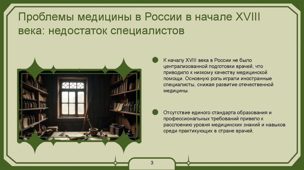 Проблемы медицины в России в начале XVIIIвека: недостаток специалистов