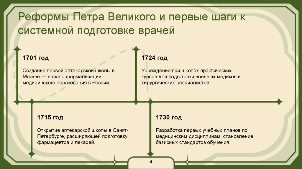 Реформы Петра Великого и первые шаги ксистемной подготовке врачей