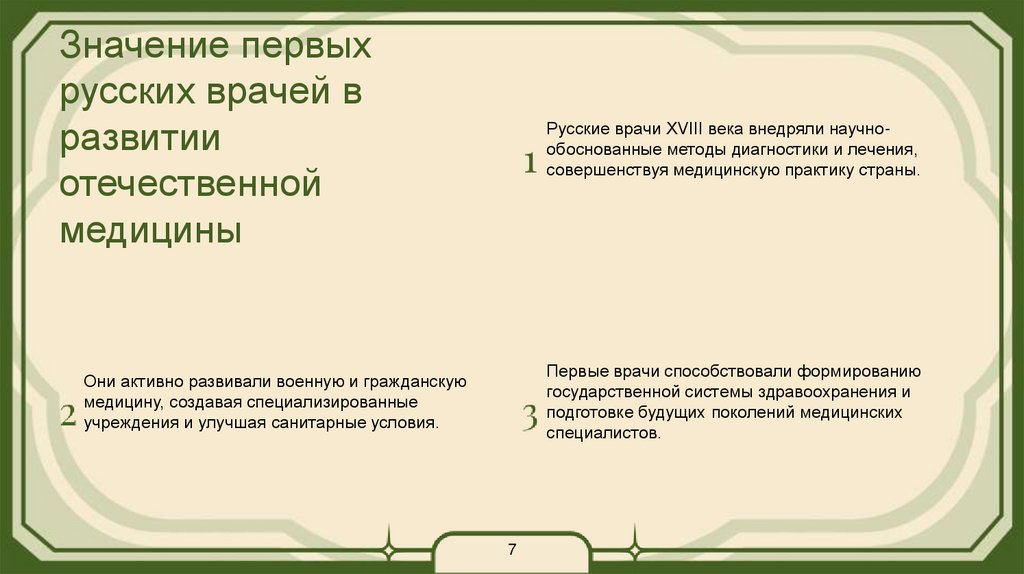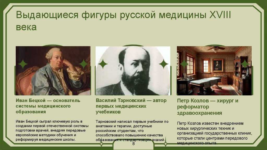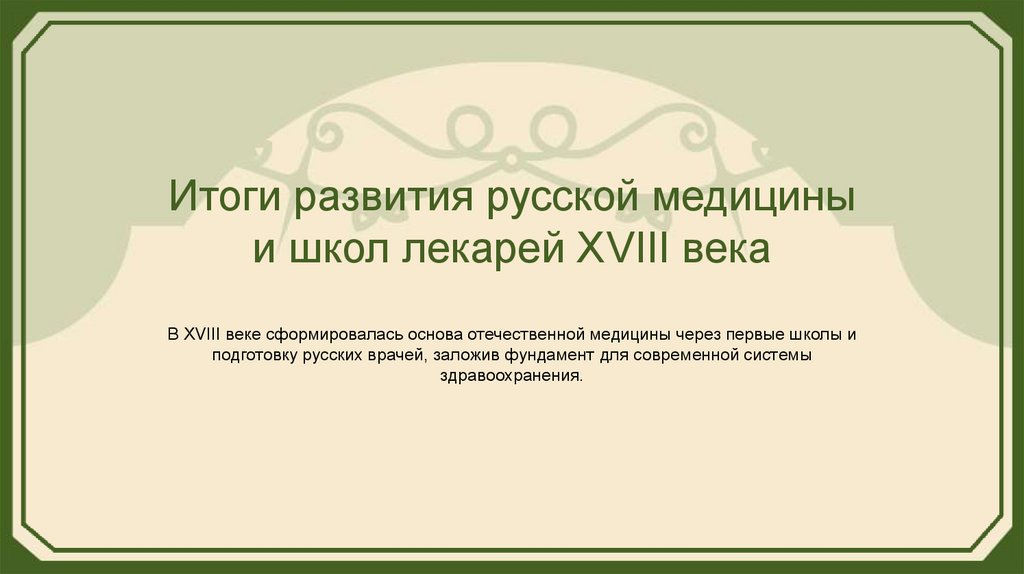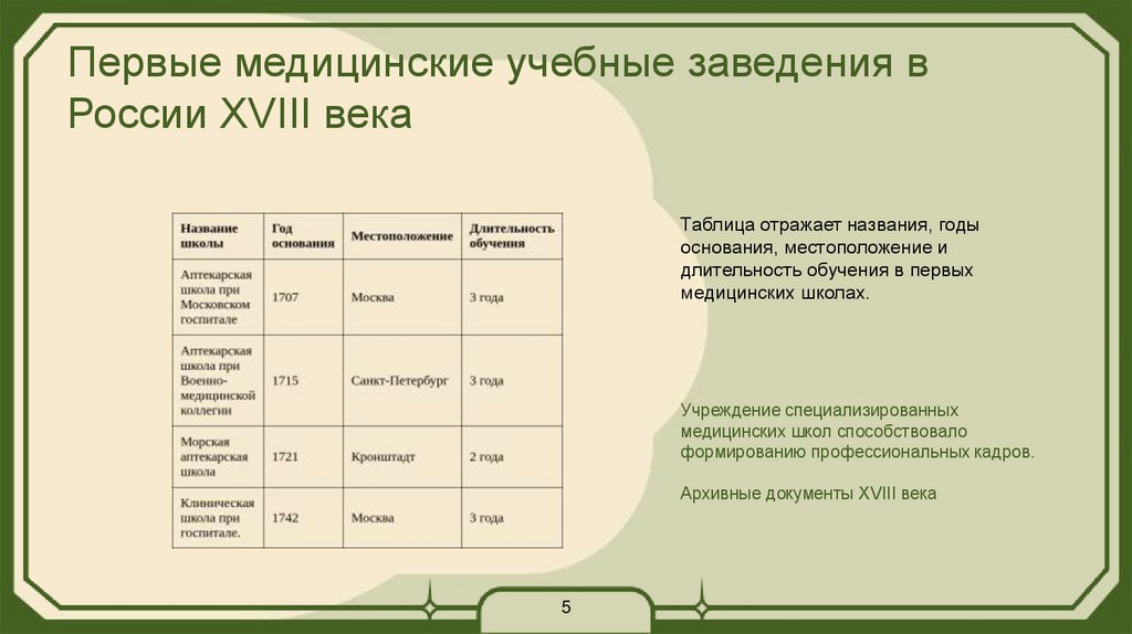 В XVIII веке сформировалась основа отечественной медицины через первые школы и
