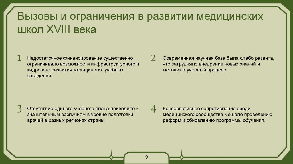 Вызовы и ограничения в развитии медицинскихшкол XVIII века