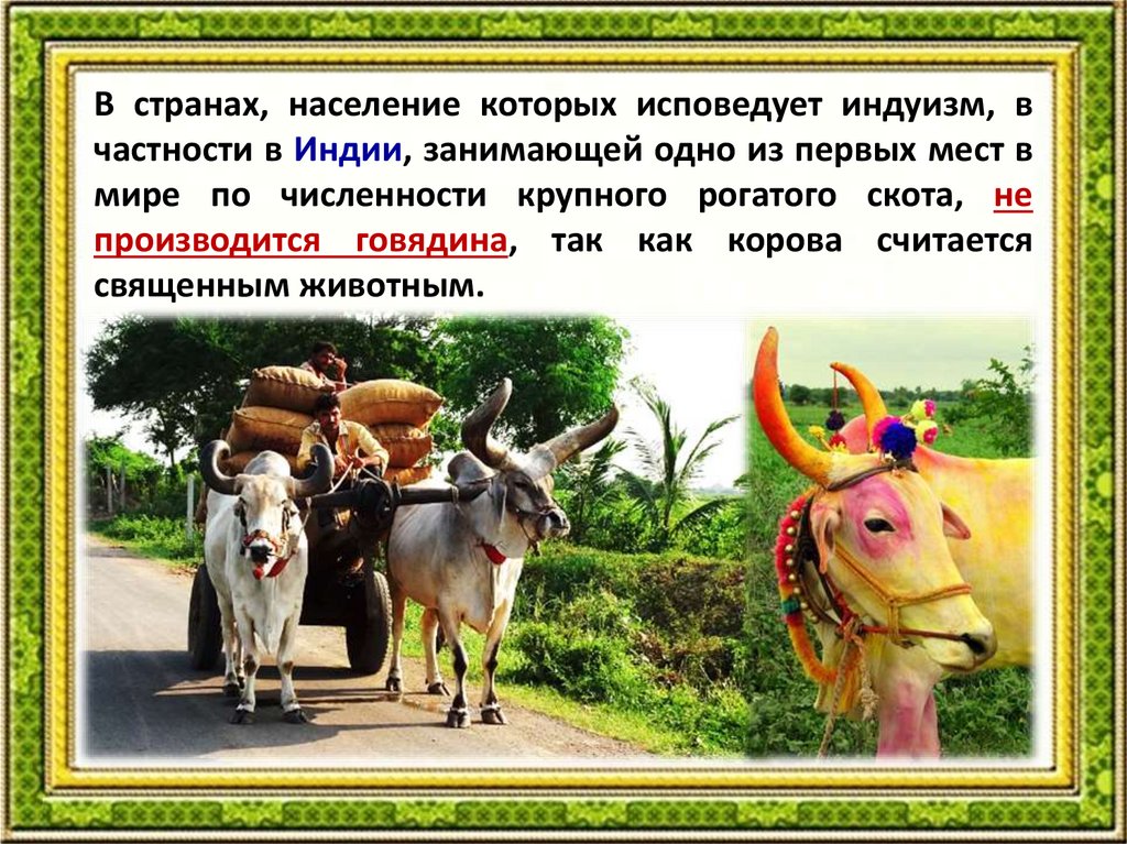 В странах, население которых исповедует индуизм, вчастности в Индии, занимающей одно из первых мест в