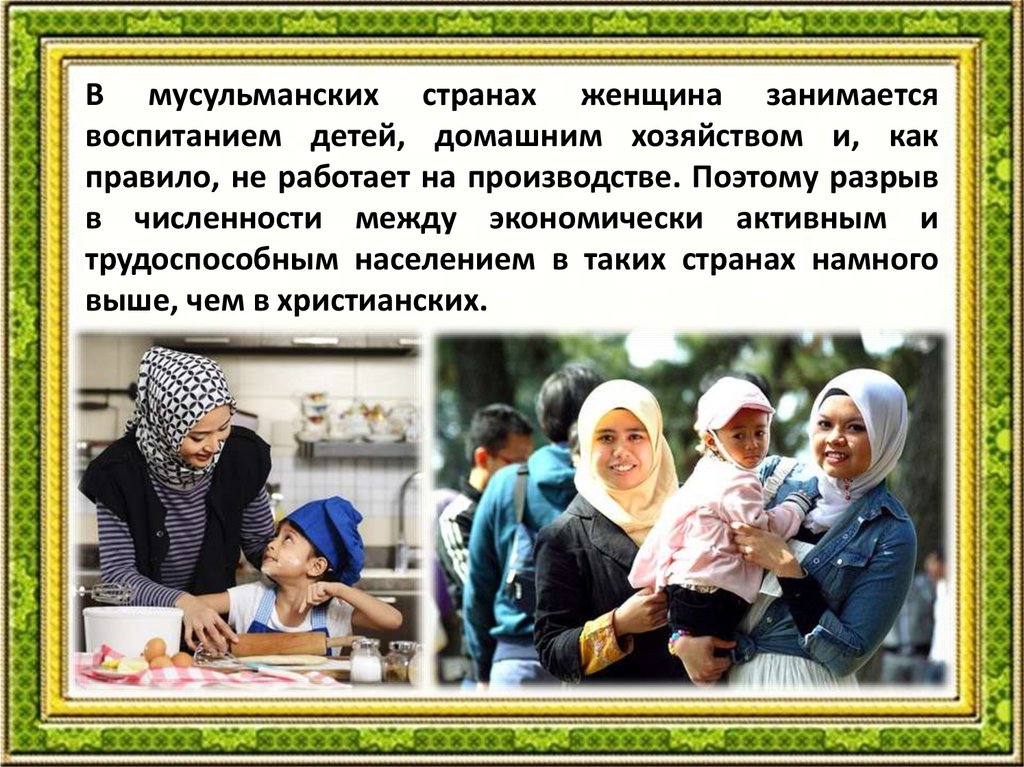 В мусульманских странах женщина занимаетсявоспитанием детей, домашним хозяйством и, как