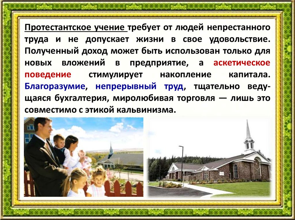Протестантское учение требует от людей непрестанноготруда и не допускает жизни в свое удовольствие.