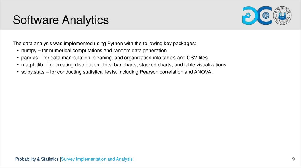 Software AnalyticsThe data analysis was implemented using Python with the following key packages: