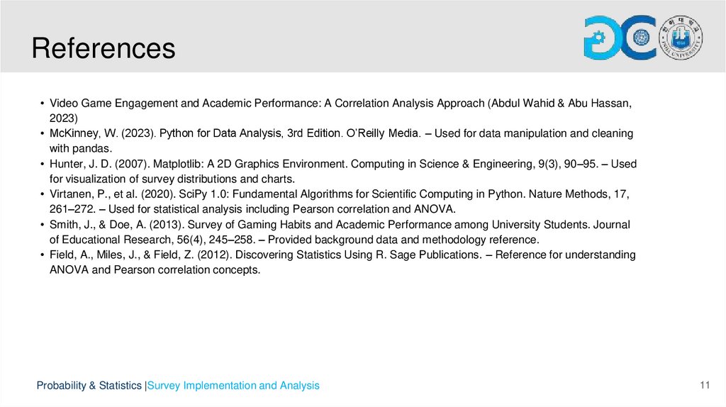 • Smith, J., & Doe, A. (2013). Survey of Gaming Habits and Academic Performance among University Students. Journal