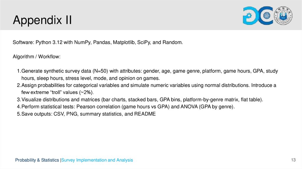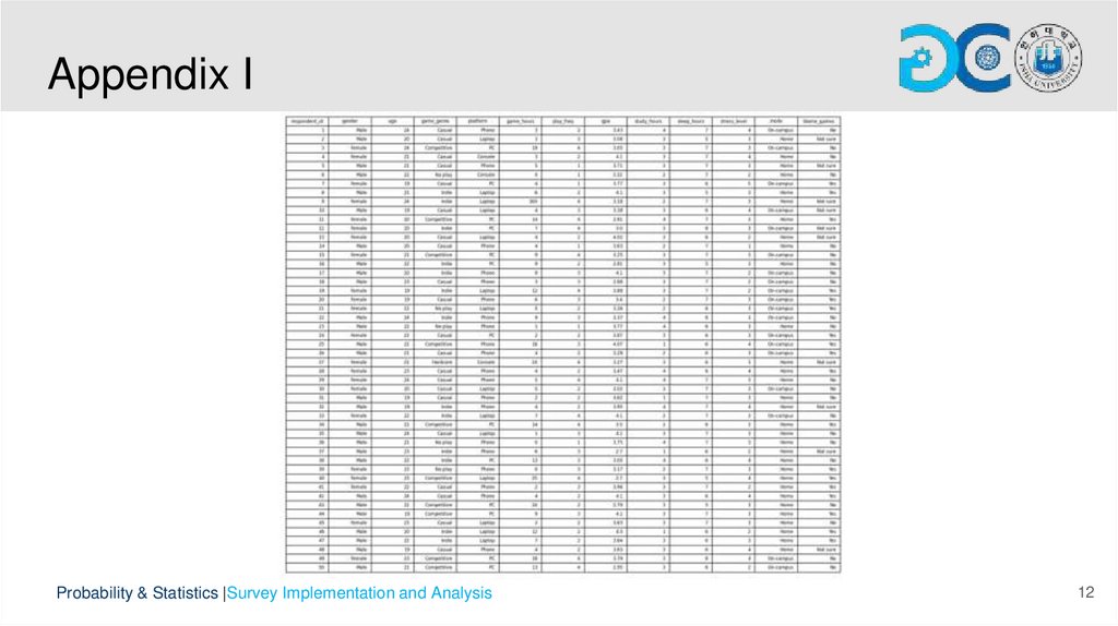 Appendix IProbability & Statistics |Survey Implementation and Analysis