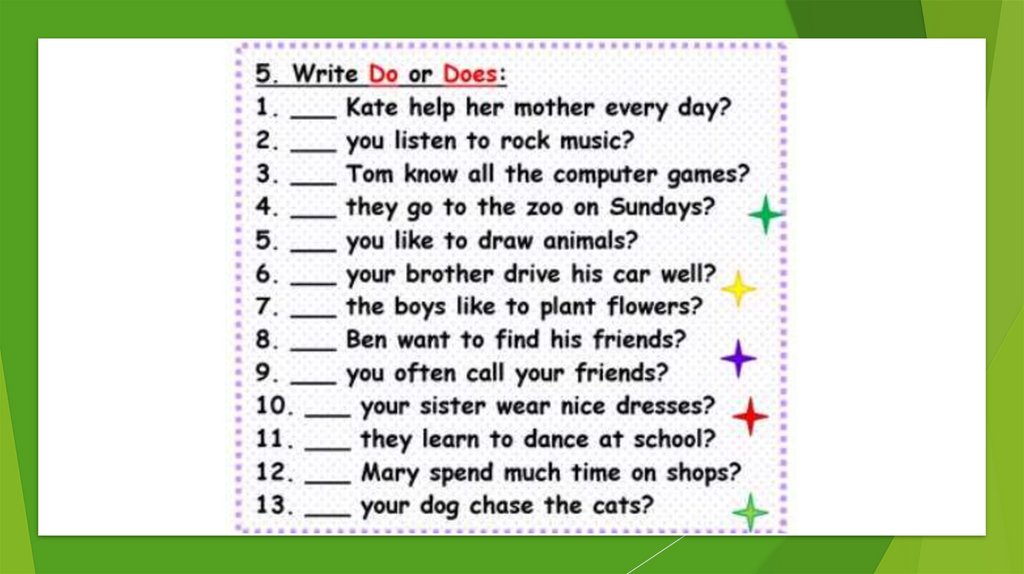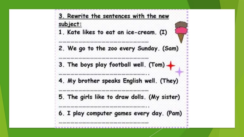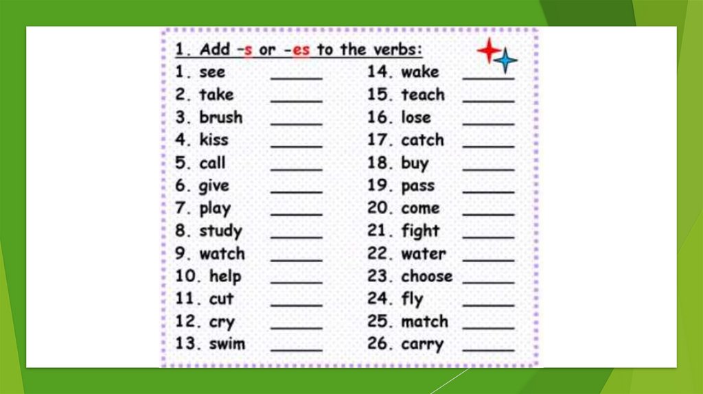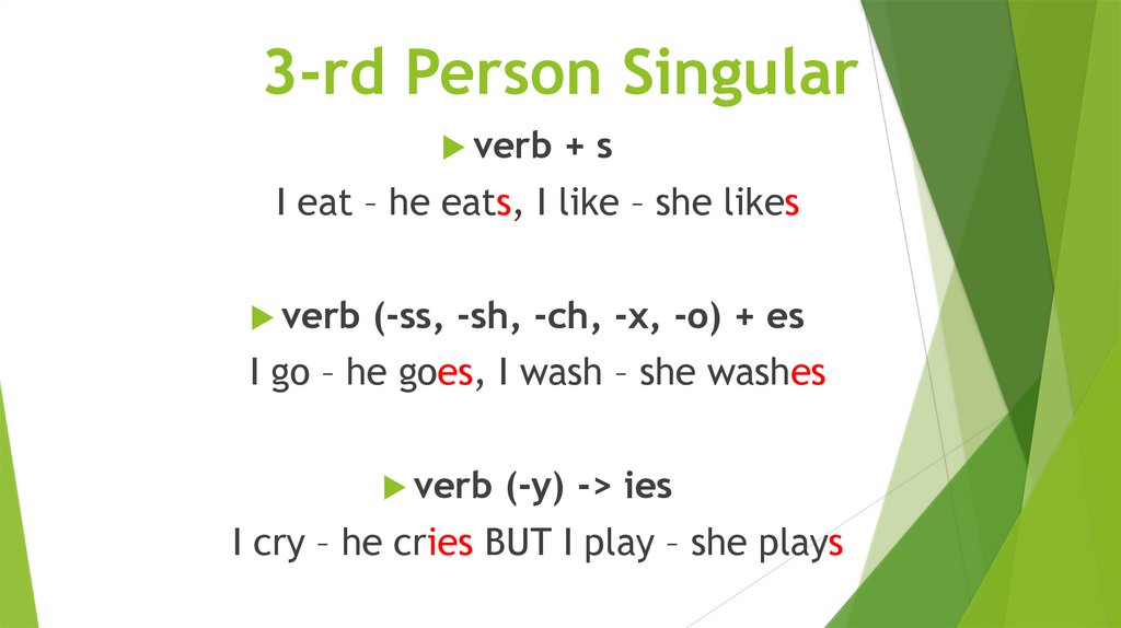 I eat – he eats, I like – she likes