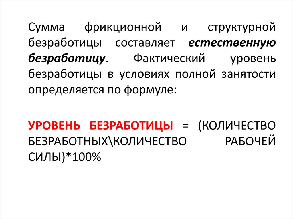 Сумма фрикционной и структурнойбезработицы составляет естественную