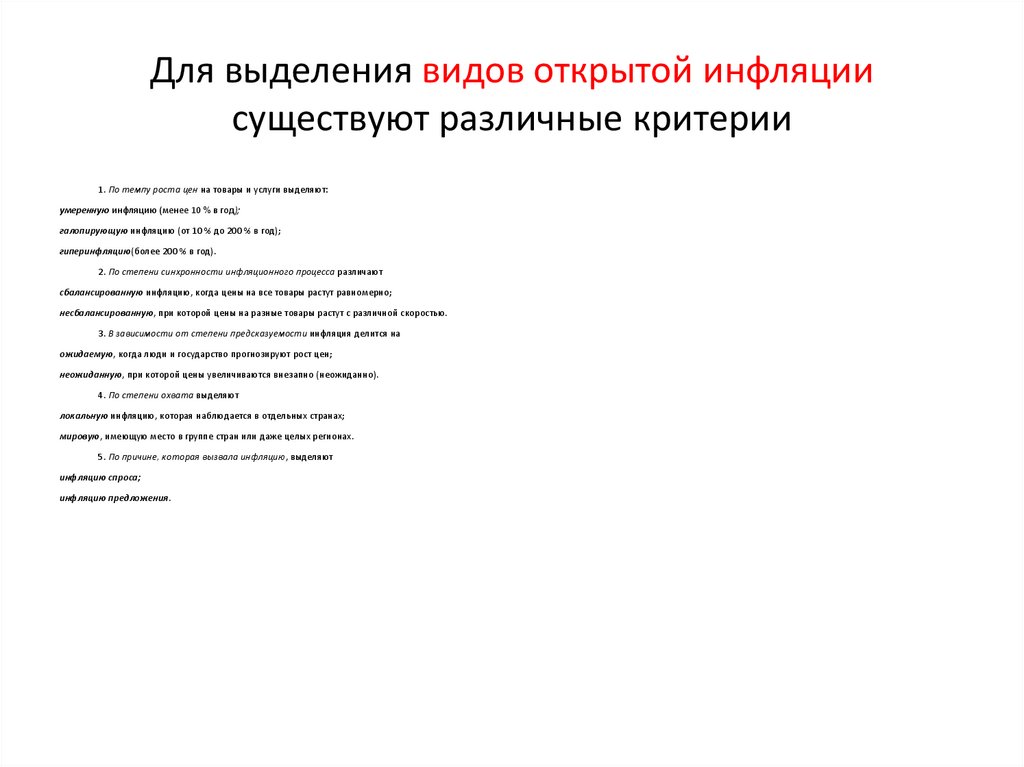 Для выделения видов открытой инфляциисуществуют различные критерии