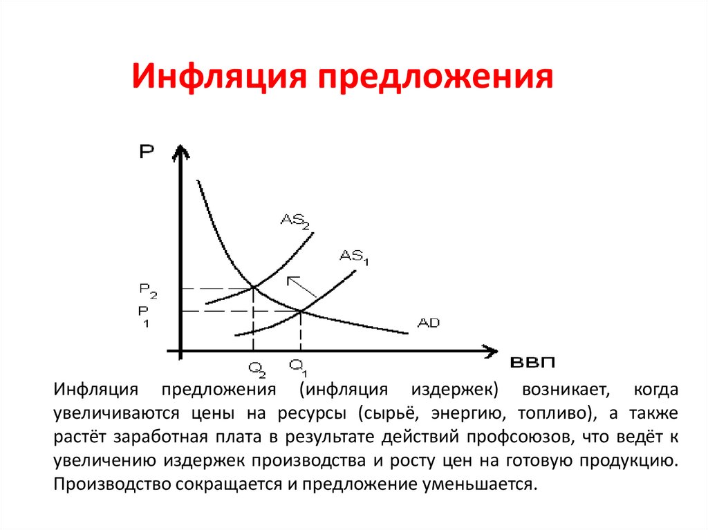 Инфляция предложенияИнфляция предложения (инфляция издержек) возникает, когда