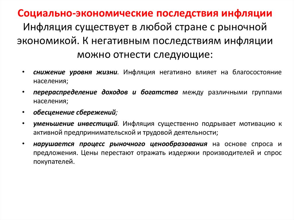 снижение уровня жизни. Инфляция негативно влияет на благосостояние
