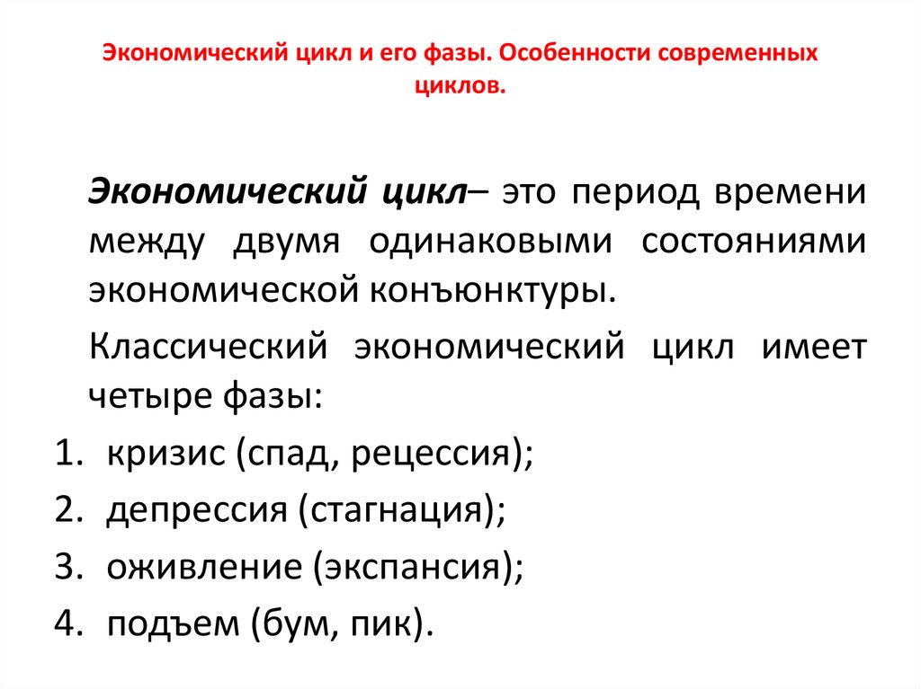 Экономический цикл и его фазы. Особенности современныхциклов.