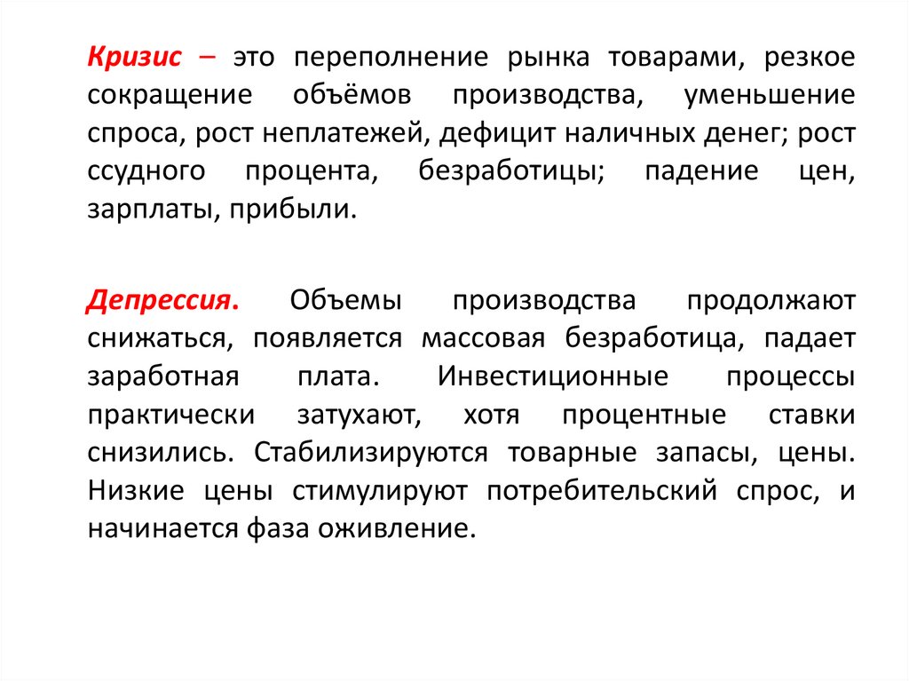 Кризис – это переполнение рынка товарами, резкоесокращение объёмов производства, уменьшение