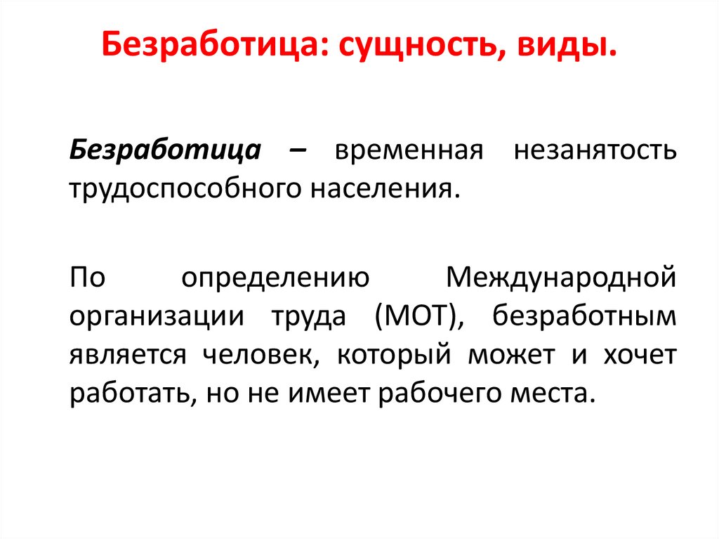 Разновидностью фрикционной безработицы является сезонная безработица, которая возникает потому, что спрос на рабочую силу в отдельных отраслях экономики разный в