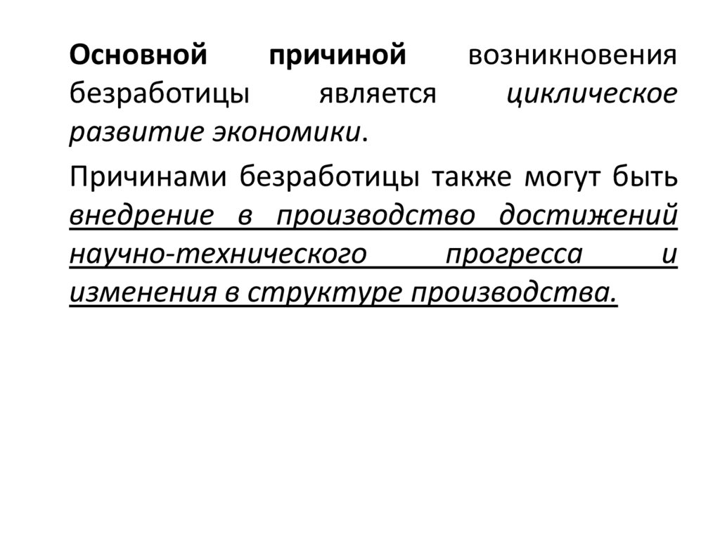 3. Циклическая безработица связана с цикличностью развития экономики, возникает в периоды спада производства и кризиса. В это время снижается спрос на рынке труда.