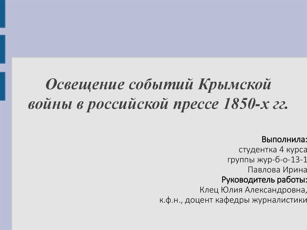 Освещение событий Крымскойвойны в российской прессе 1850-х гг.