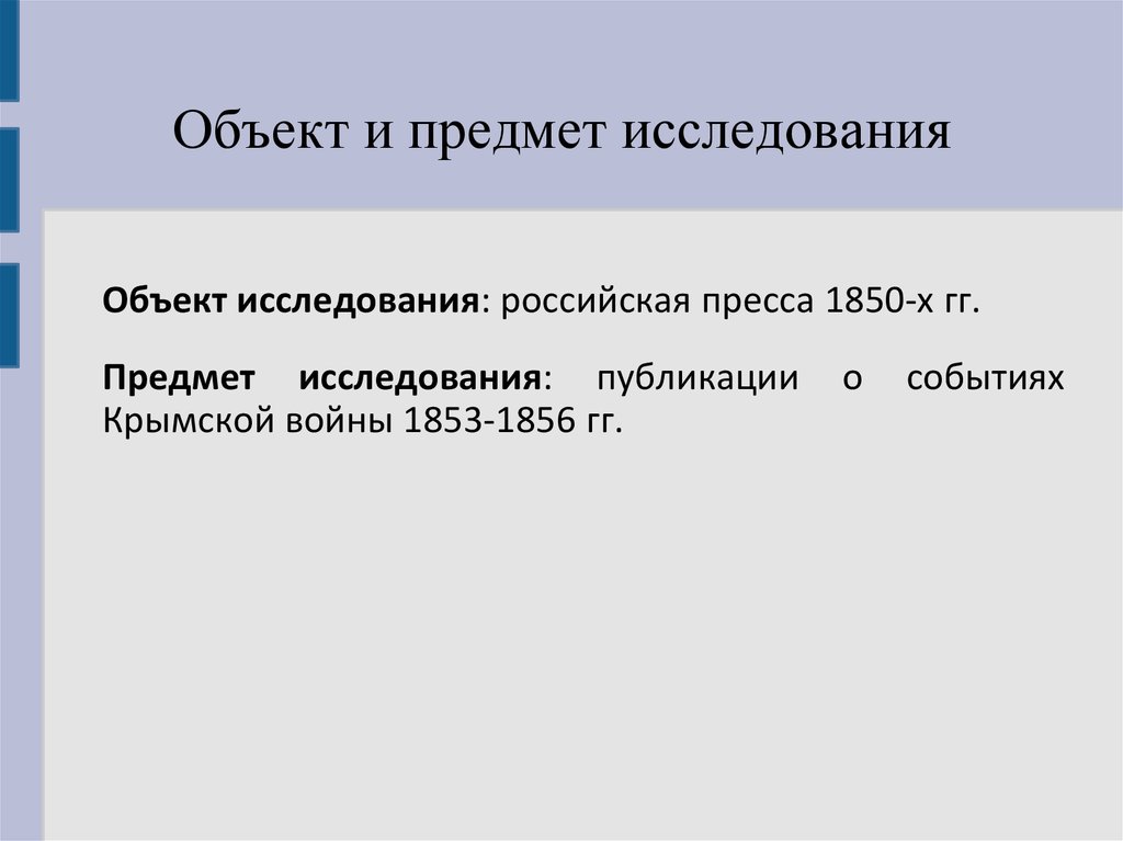Объект и предмет исследованияОбъект исследования: российская пресса 1850-х гг.