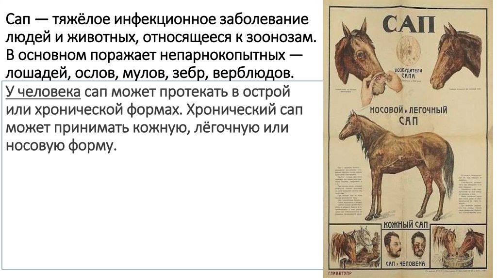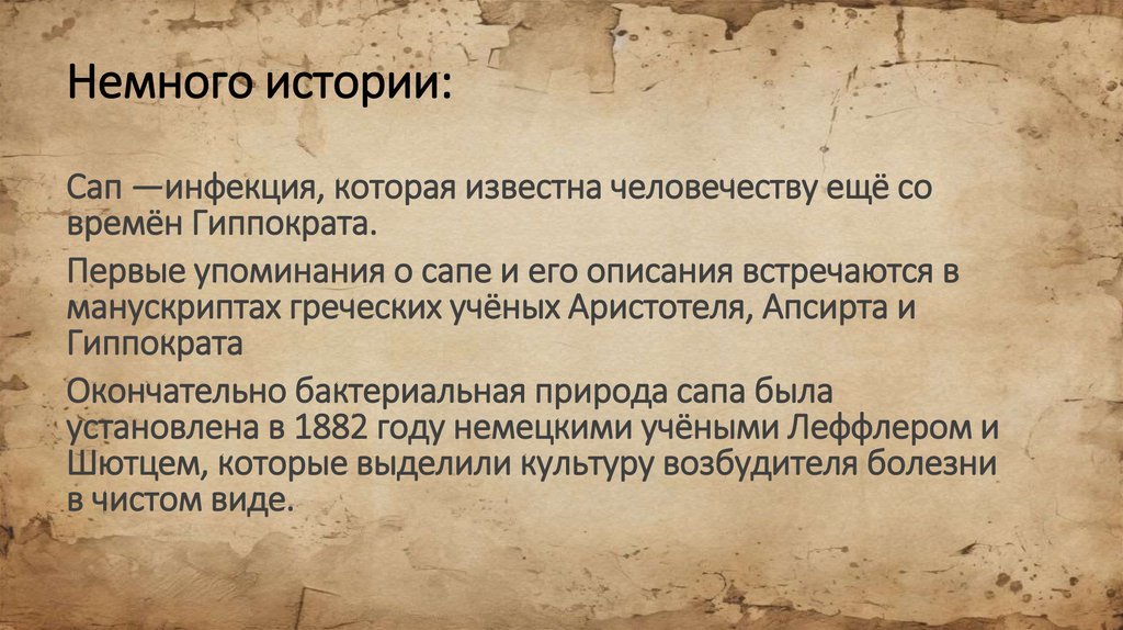 Немного истории:Сап —инфекция, которая известна человечеству ещё со