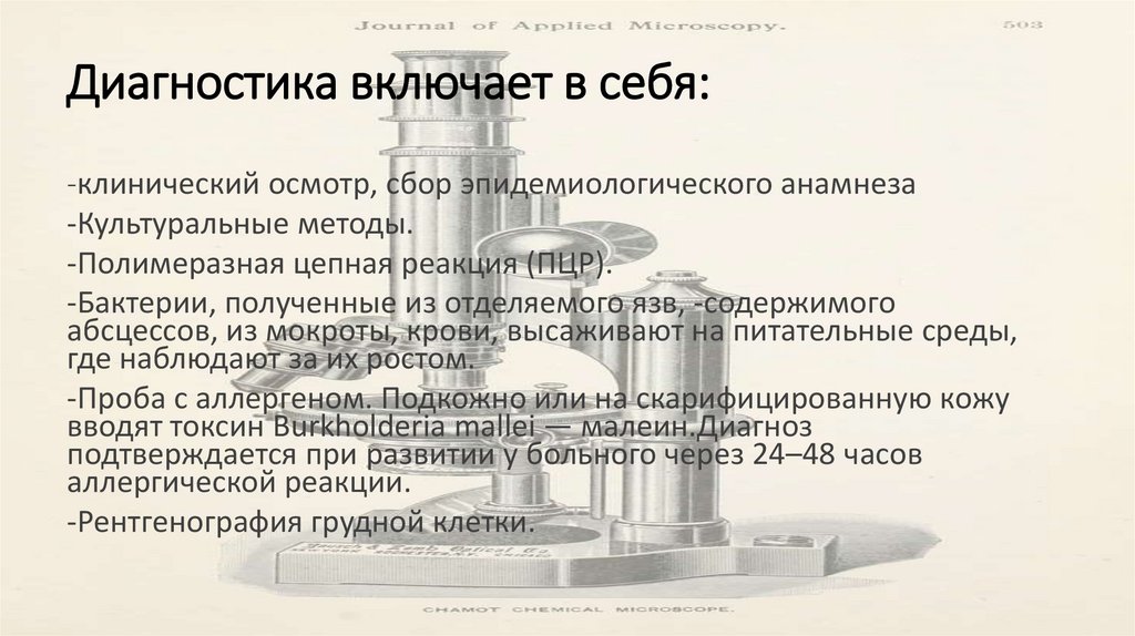 вводят токсин Burkholderia mallei — малеин.Диагноз