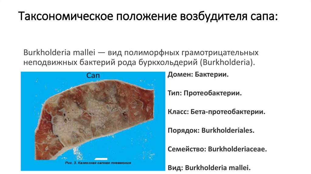 Таксономическое положение возбудителя сапа:Burkholderia mallei — вид полиморфных грамотрицательных