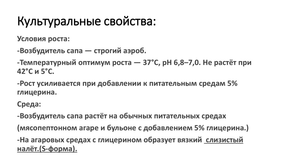 (мясопептонном агаре и бульоне с добавлением 5% глицерина.)