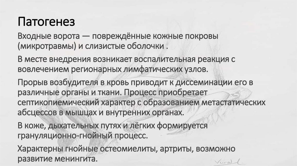 ПатогенезВходные ворота — повреждённые кожные покровы