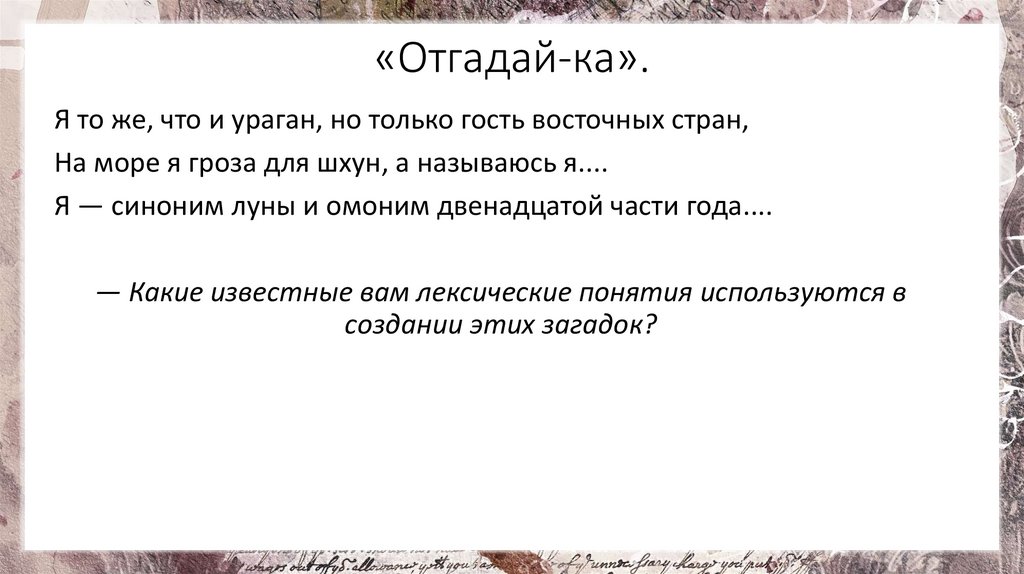 Я то же, что и ураган, но только гость восточных стран,На море я гроза для шхун, а называюсь я....