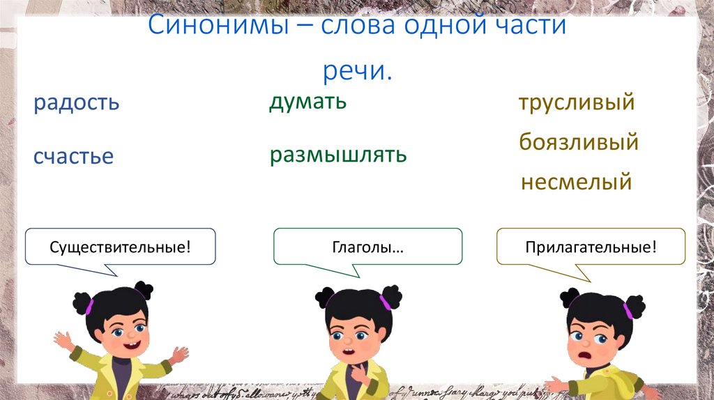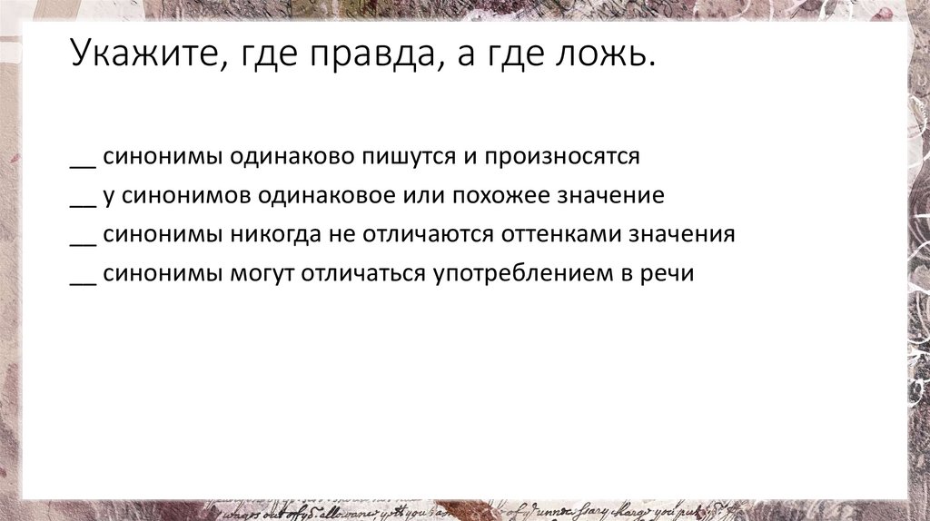 __ синонимы одинаково пишутся и произносятся__ у синонимов одинаковое или похожее значение