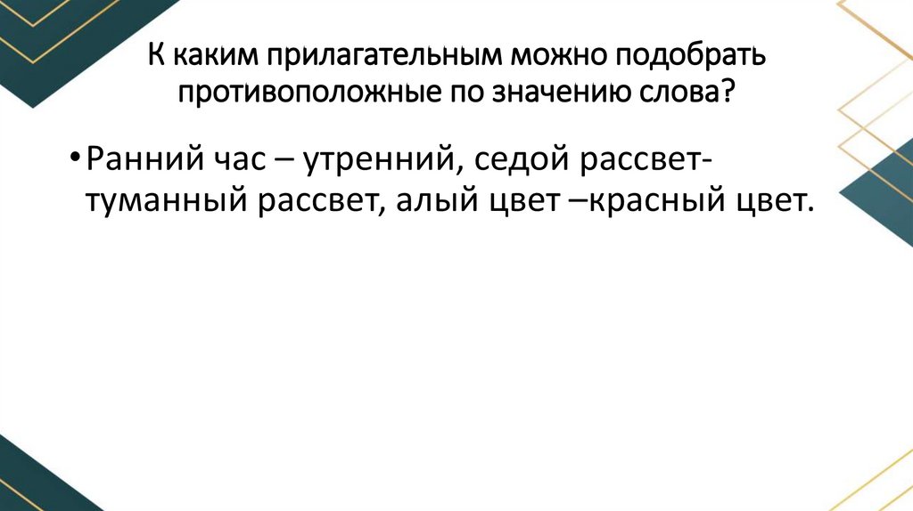 2. К каким прилагательным можно подобрать противоположные по значению слова?