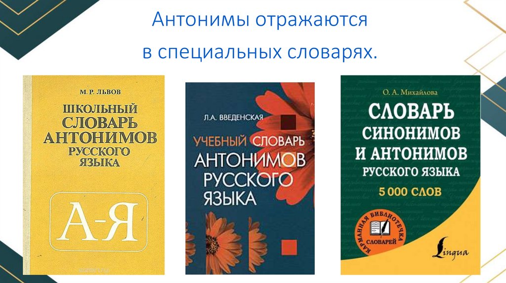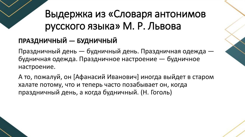 10. Выдержка из «Словаря антонимов русского языка» М. Р. Львова