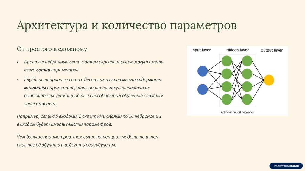 Чем больше параметров, тем выше потенциал модели, но и тем