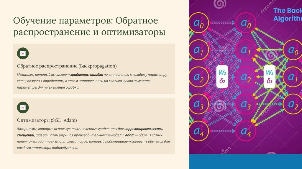 Обучение параметров: Обратноераспространение и оптимизаторы