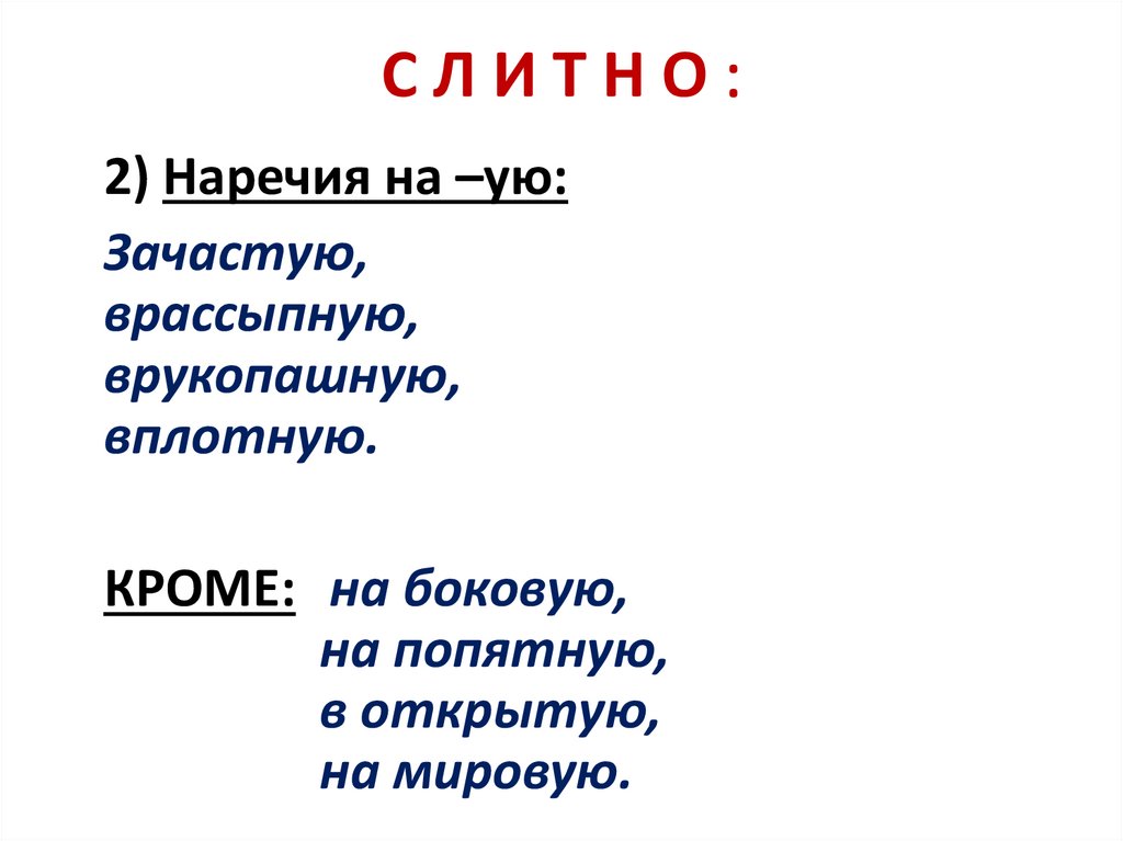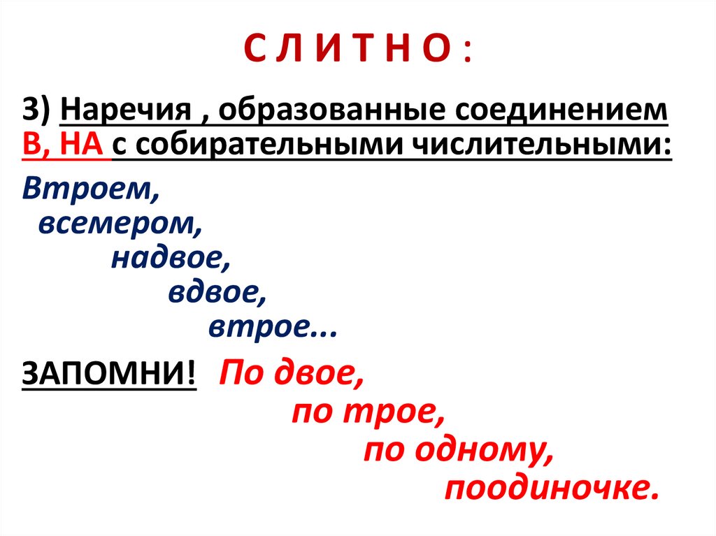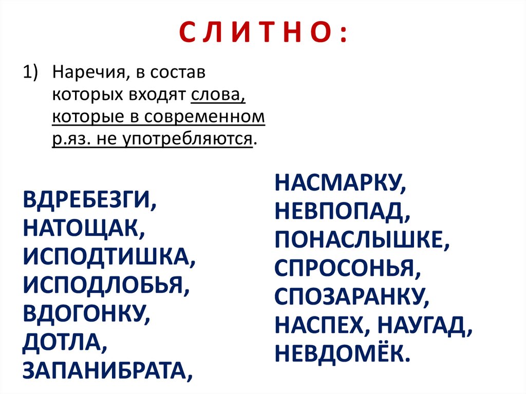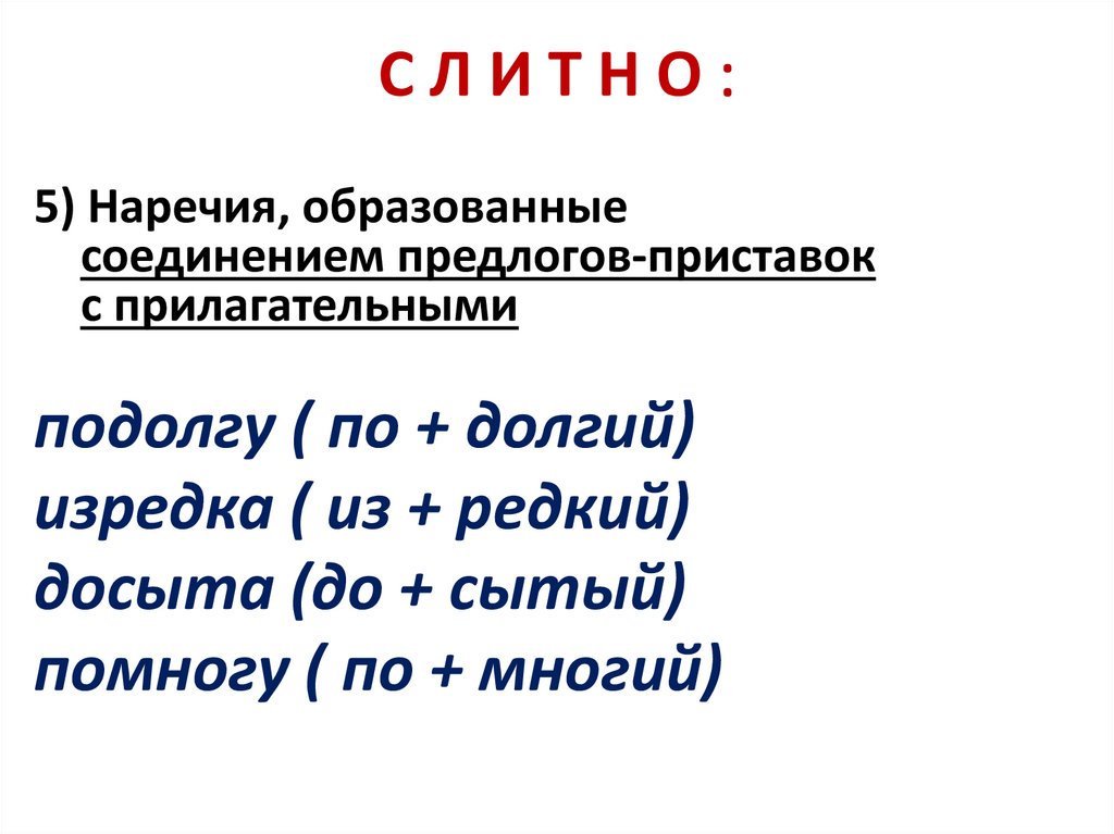 СЛИТНО:5) Наречия, образованные
