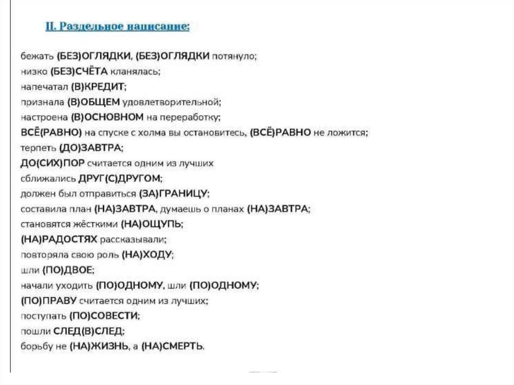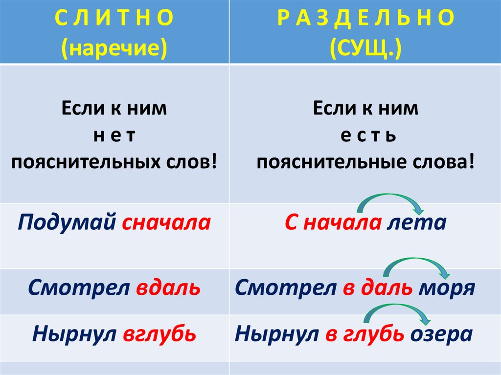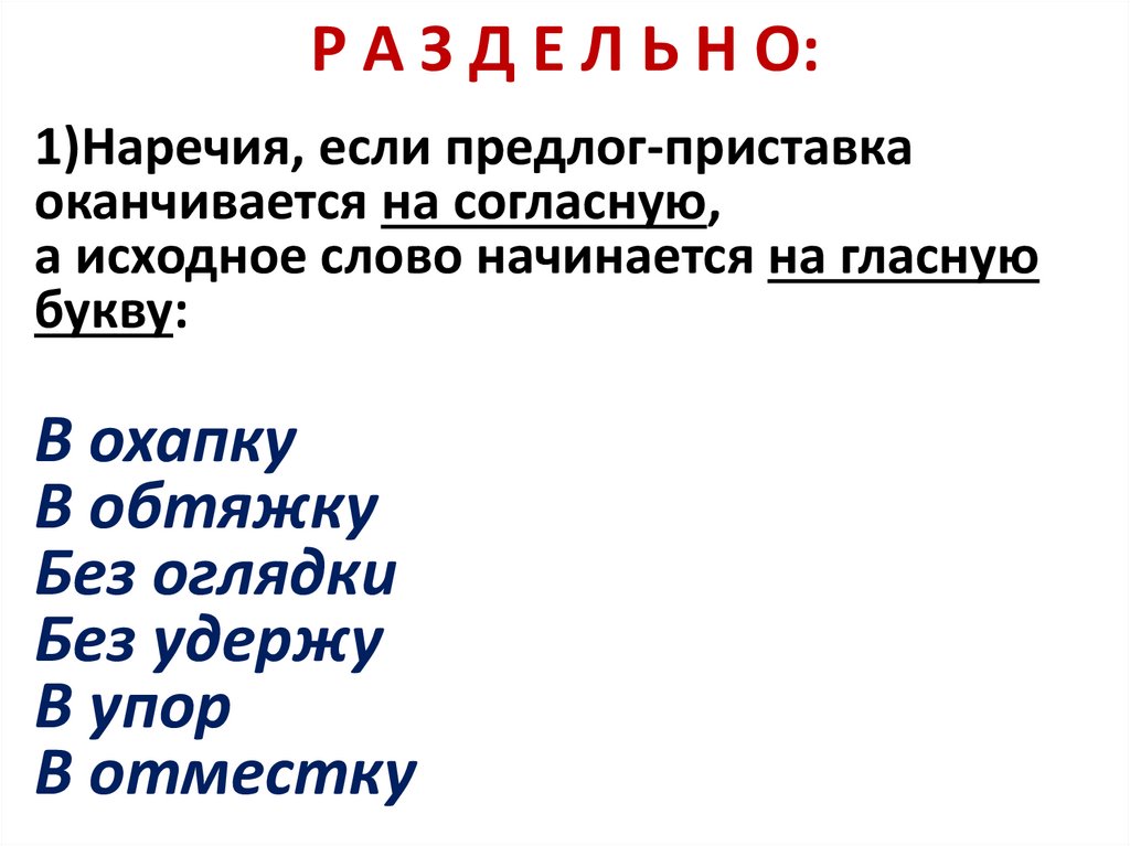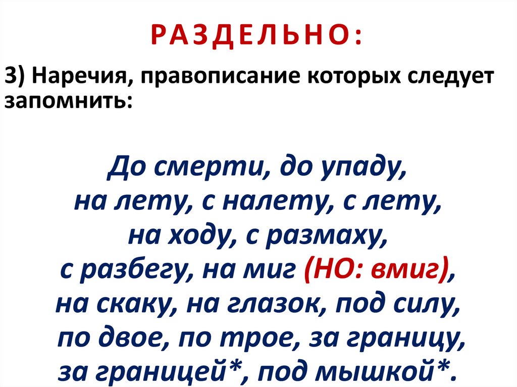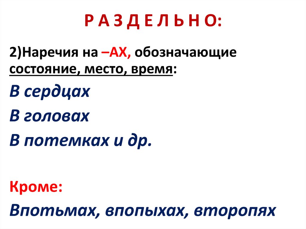 РА З Д Е Л Ь Н О :3) Наречия, правописание которых следует