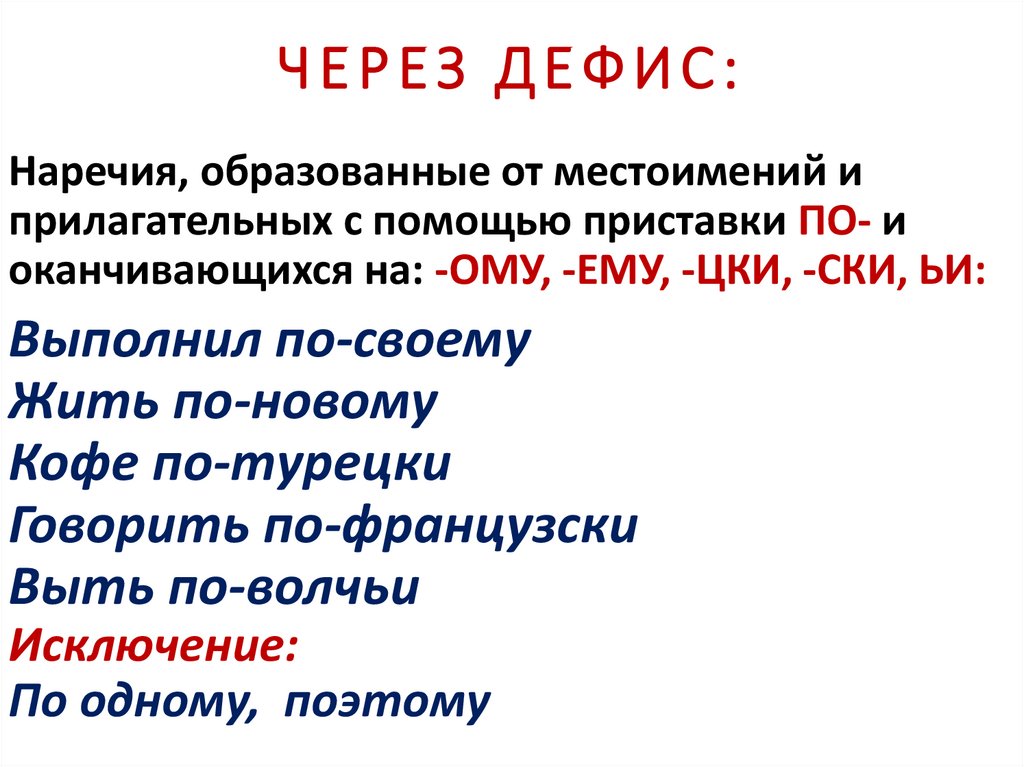 Наречия, образованные от местоимений иприлагательных с помощью приставки ПО- и