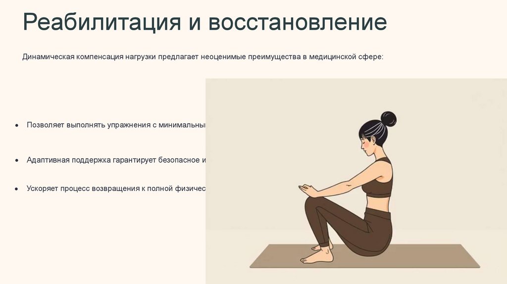 Реабилитация и восстановлениеДинамическая компенсация нагрузки предлагает неоценимые преимущества в медицинской сфере:
