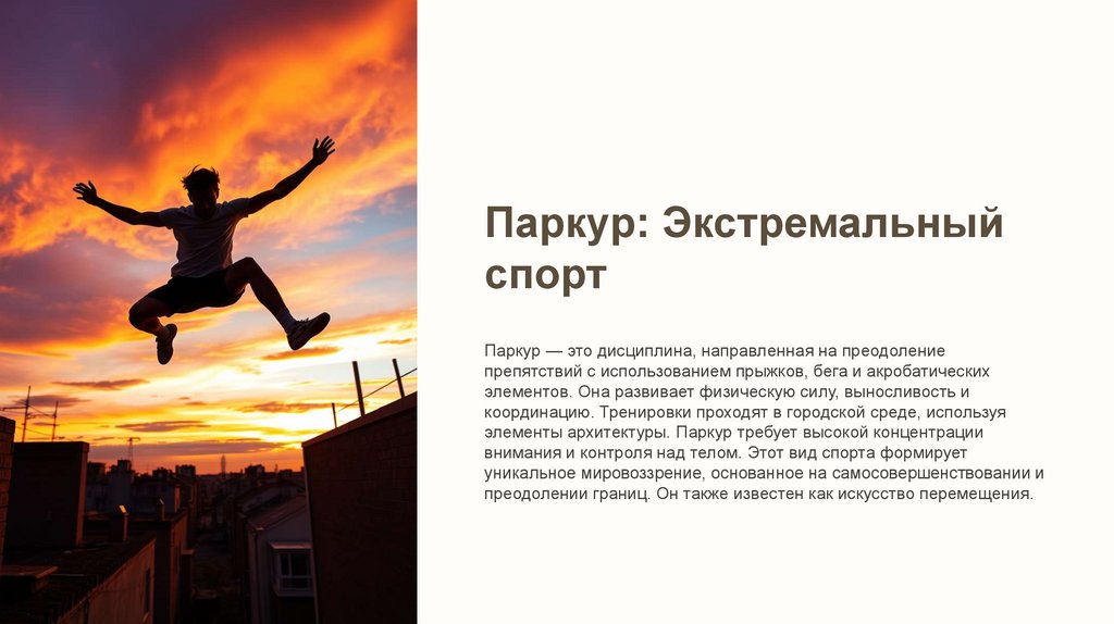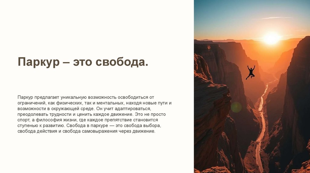 Паркур – это свобода.Паркур предлагает уникальную возможность освободиться от