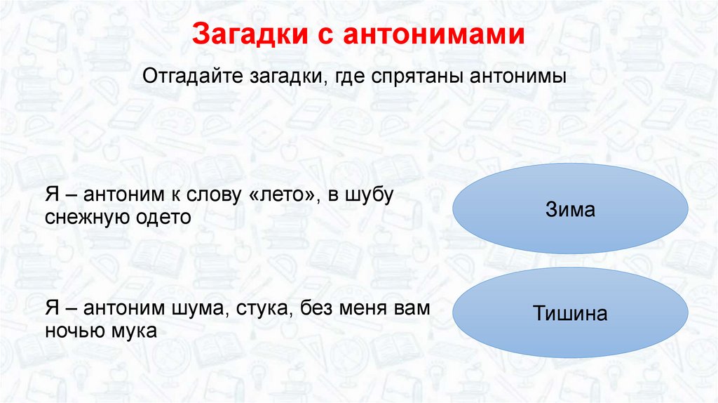 Отгадайте загадки, где спрятаны антонимыЯ – антоним к слову «лето», в шубу