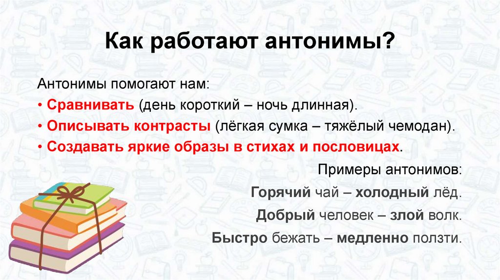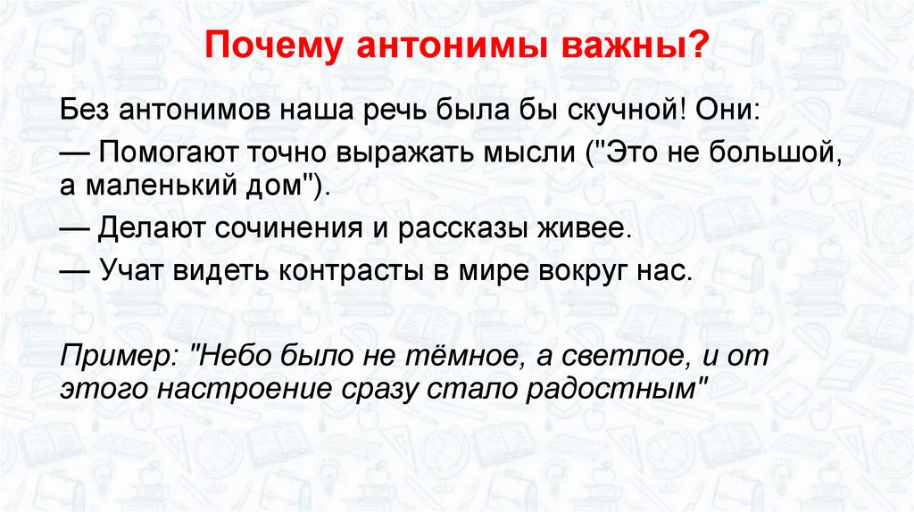 Без антонимов наша речь была бы скучной! Они:— Помогают точно выражать мысли ("Это не большой,
