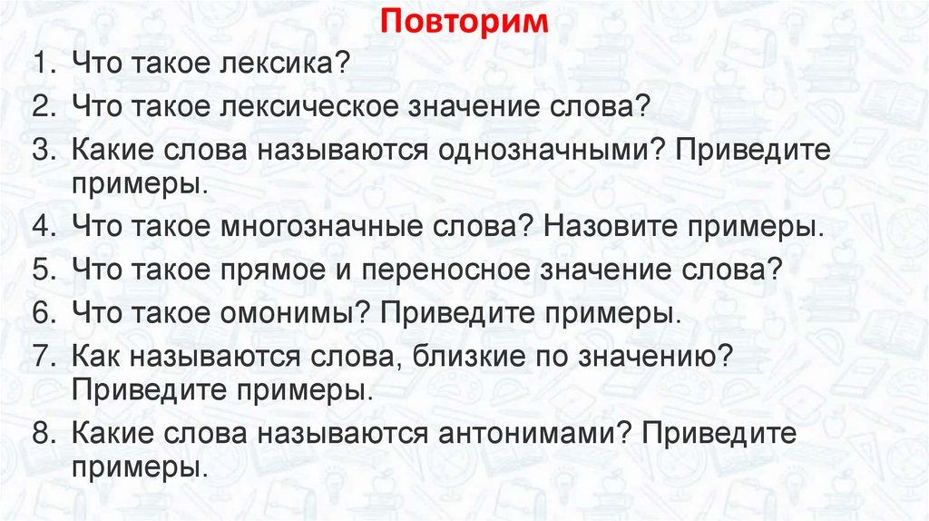 1. Что такое лексика?2. Что такое лексическое значение слова?