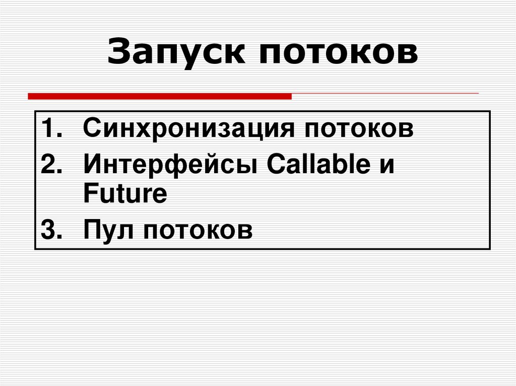 1. Синхронизация потоков2. Интерфейсы Callable и