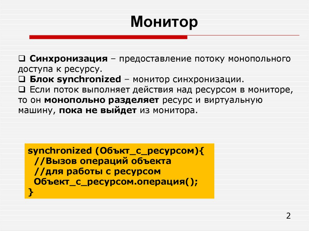 Блок synchronized – монитор синхронизации.