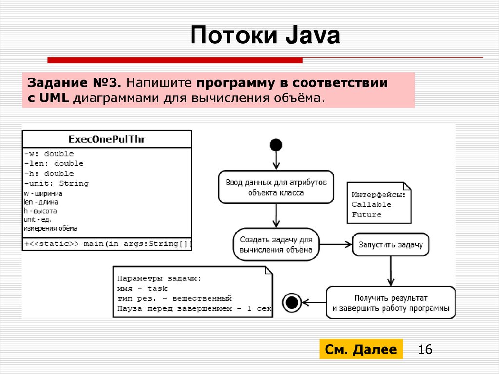 Задание №3. Напишите программу в соответствиис UML диаграммами для вычисления объёма.