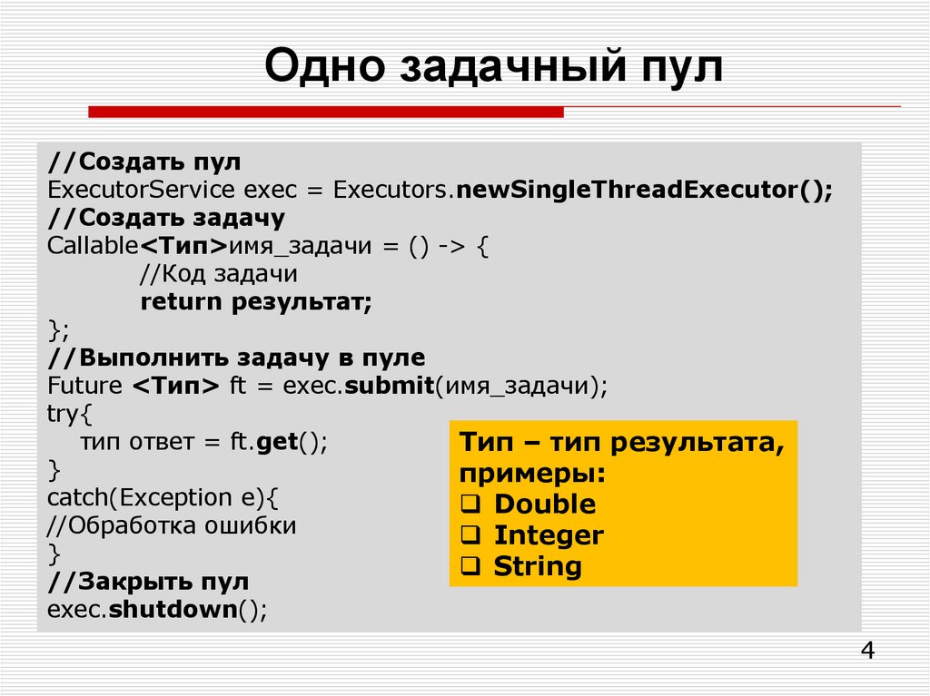 4. Одно задачный пул