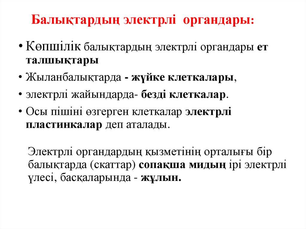 арнайы электрлі органдары болады. Электрсіз балықтардың арнайы электрлі